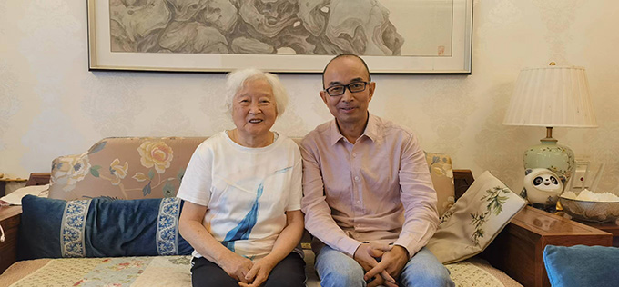 (圖為2023年5月13日,開(kāi)寫傳記陳駿在蘇州金雞湖畔客戶家中,和主人公合影留念)