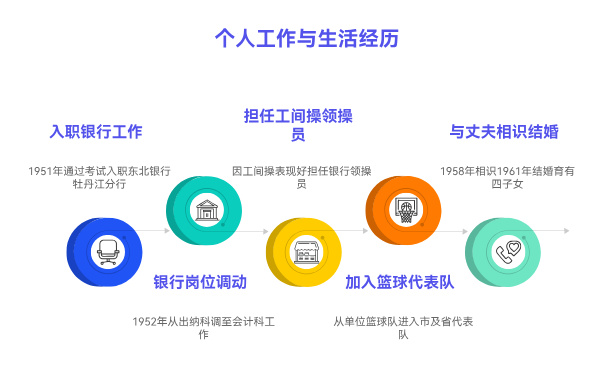 1951年 17歲 通過考試進(jìn)入東北銀行(人民銀行前身),被分配至牡丹江,在出納科做點鈔工作。