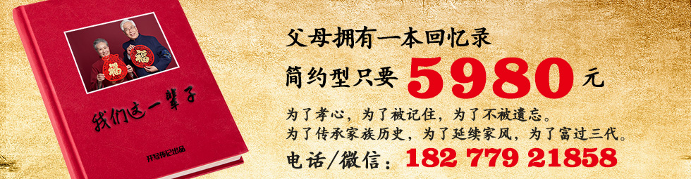 也有的老人經(jīng)濟(jì)富足,然而生活中孤單孤獨(dú),找人寫回憶錄,純粹是給自個(gè)找點(diǎn)事做,有個(gè)人和自己在一起,一起回憶歲月,一起感慨人生。
